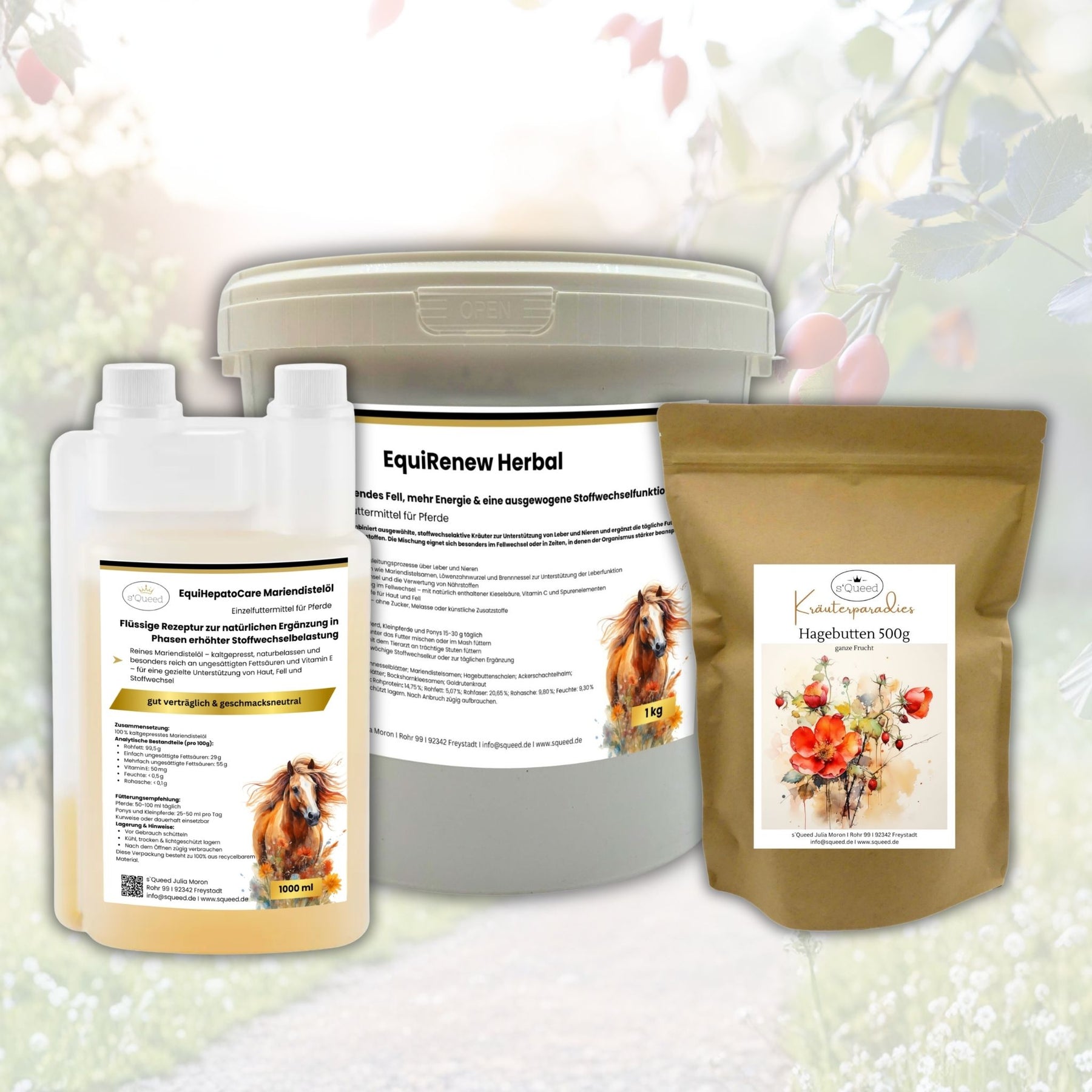 Übrigens: EquiHepatoCare gibt es auch gemeinsam mit EquiRenew Herbal und Hagebutten im Spar-Set.